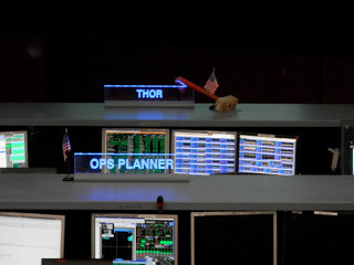 Funny story: each Flight Director has a color code-name. The first three were Red, White, and Blue. Since then, nearly all the colors have been claimed, including Indigo and Chartreuse! Each color can only be used once--those framed documents in the picture above are the retired colors of past Flight Directors. They've since run out of colors (except Pink--no one's claimed Pink), and now use other things, such as minerals and rocks (Iron and Granite) as code names for the Flight Directors.