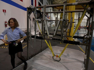 Of course, it's pretty hardcore to work on the ISS, event underwater. Here, our guide's explaining the way the astronauts suit up. After stepping into the lower-half of the suit (aka "astronaut pants"), they get into this rig, where the upper part of the suit is attached with the help of others. It's considerably easier to get the suit on when you're in anti-grav!