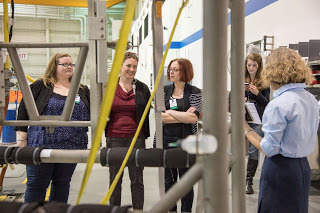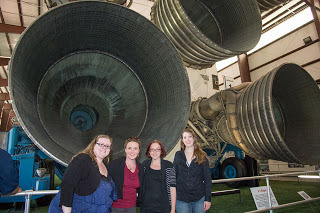 Me, Carrie, Victoria, and Kate posing behind the thrusters.