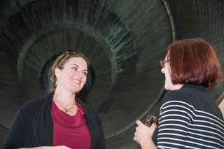 Carrie and Victoria chatting with HUGE GIANT ROCKET SHIP THRUSTERS BEHIND THEM as you do.