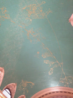 Here's a small mock-up of what the mirror will look like (the painted hive on the wall is lifesize). Don't the gold mirrors look like a honeycomb?