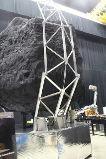 In the picture above, the big black thing is a boulder from an asteroid. A potentially Earth-killing asteroid (think: dinosaur extinction). The Asteroid Redirect Mission will spot these giant asteroid 20-30 years before they reach Earth, and then send this giant robot out to the asteroid. It'll pluck a boulder from the asteroid, then start orbiting the asteroid to redirect its path. Crazy cool, right?! More info here.