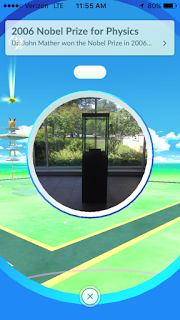 John's Nobel Prize for Physics! I've never seen one in real life before--that was super cool! Also, fun FYI, the Nobel Prize is the only Pokestop on campus, which means I got to get a Pokestop that only NASA employees can get...
