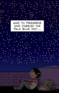 Carl Sagan is also responsible for the famous "Pale Blue Dot" speech, when NASA's Voyager 1 spacecraft turned around on it's journey in the universe to take a picture of Earth, a pale blue dot floating in the vastness of space.