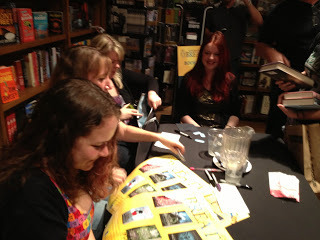 At Books of Wonder (which really is full of wonder), we hooked up with Lili Peloquin, author of THE INNOCENTS. She is fabulous and funny and I wish we could have kidnapped her for the entire time. She also left me a secret message in the book she signed for me, but I am not showing you! (It's secret.)