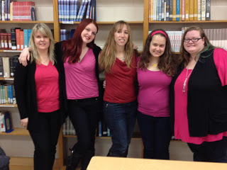 Morgan, Bertie, Fiona, Jess, and me all in shades of pink and red!