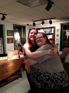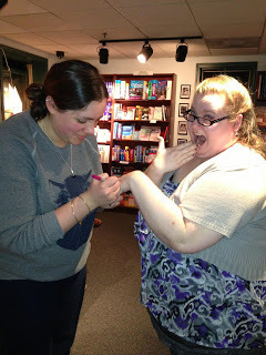 And! Connecticut is where I got to see one of my favoritest people in the world, Lauren DeStefano! Whose name I still can't pronounce correctly, but who loves me anyway. In fact, she loves me so much that when she realized my engagement ring had broken, she promptly proposed and drew a new ring on my finger. We're getting married in the spring and are registered at Tiffany's. :p