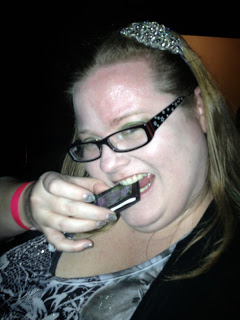 Jessica and I in the green room under the stage. Jesse was rocking out over us, and the entire room thrummed with music.