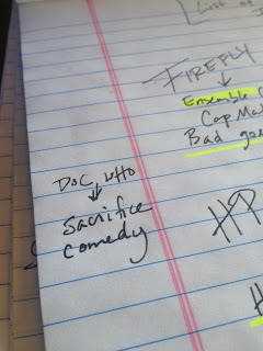 Something definitely clicked when I added Doctor Who (the Doctor would be proud). The thing that I love about DW is that it mixes the comedic with the tragic, usually though some sort of sacrifice. In the end, the Doctor is a sacrificial character who's incredibly funny, and I love that.