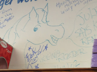 At Blue Willow Books in Houston, TX, we got to sign the wall!