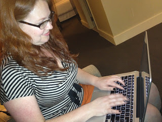 The whole time on tour, Andrea was working on her next book. Here she is, typing up the name of a character that Jessica, Marie, and I helped to name after a brief brainstorming session! I call dibs on being the writing-godmother!