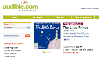 And then I came to THE LITTLE PRINCE. I actually quite love this title--it's a beautiful book, with beautiful illustrations (and readers of A MILLION SUNS will know that I like this book so much that I made it a part of that book, too). But it's not one of the books I bought. Despite the fact that it was $5, I just did not care to own it in audiobook format.