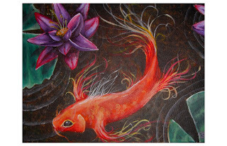 Her name is Charly White, and she agreed to help me out with my contest this year by contributing a very special painting: a koi fish by the original "Harley."