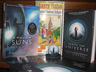 OK, so there are five prizes total--3 signed copies of ACROSS THE UNIVERSE with swag, 1 signed copy of ACROSS THE UNIVERSE with swag and a box of Turkish Delight, and one Grand Prize winner of all 19 signed books.