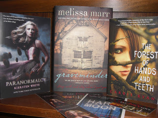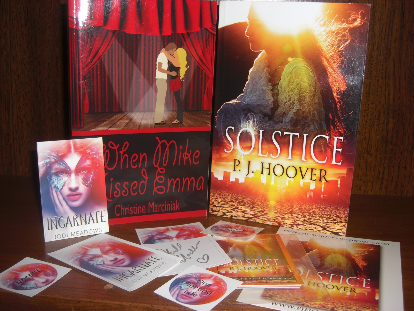 Swag from Matt Blackstone, Keri Mikulski, Stacia Kehoe, Helen Landalf, Caroline Starr, Carrie Harris, Sonia Gensler, Ruta Sepetys, Terry Johnson, Kristen Hubbard, Sara Bennet Wealer, and Kim Harrington--much of is signed!