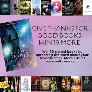 I tracked down every author I thanked in my acknowledgements--the ones who blurbed me, the ones who critiqued me, the ones who became my friends, and I got a signed copy of each of their books. Add that to a copy of Across the Universe and an ARC of A Million Suns, and this giveaway is...HUGE. 19-signed-books-plus-swag-and-more HUGE.