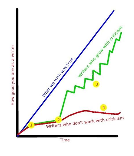 But at Point 2, I introduce criticism. Now, authors get criticism in different ways, but what I mean by "criticism" is constructive advice. This could be--and will be for most authors--critique partners or beta readers. But it could also be an agent or editor. Either way, my point is--at Point 2, authors get advice.