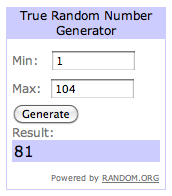The grand-prize winner (done through a drawing of all entries) was number 81.