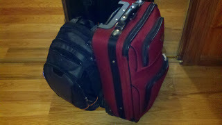 In the backpack: laptop, iPod, notebooks, pens, sweater and stuff I couldn't fit in suitcase.