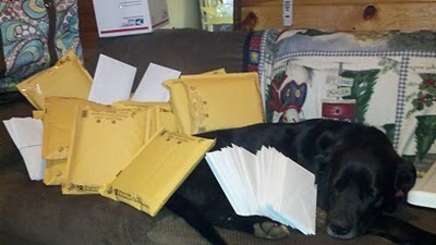 It was so surreal to be filling out the envelopes and see names I recognized--at least a dozen bloggers whose blogs I've been with or who I've conversed with on Twitter. One of the winners was someone I knew personally--a friend from college who I've not seen for at least five years and had no idea she even knew I had a book coming out (hi Amber!).