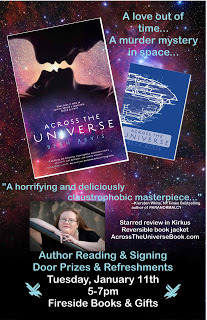 There are *gulp* just a little over two weeks before ACROSS THE UNIVERSE is out. I mean...really out. Some of you have read ARCs, and your reviews have bolstered me and filled me with joy (many times as I'm reading them I'm thinking yesssssss, they get that point! Yay, they liked that twist!). But there's something oddly terrifying about the idea that soon it will be really out there. As in, people who have never heard of me at all might pick it up off the shelf...and might put it back there. People who I hated in high school might recognize my name and roll their eyes that the nerdy girl wrote a nerdy book (that one doesn't bother me that much, actually). People who I really like and admire might read it...and hate it. My friends might read it and hate it. My family might read it and hate it.