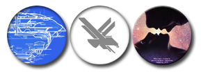 A limited edition collection of three pin-buttons featuring Across the Universe