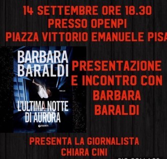 Sabato 14 settembre, ore 18:30, sarò ospite di Openpi, in Piazza Vittorio Emanuele II a Pisa. Modera la chiacchierata, la giornalista Chiara Cini. L’evento è organizzato dalla libreria Fogola.