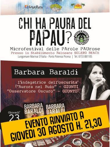 Giovedì 23 agosto alle 21:30 sarò ospite di “Chi ha paura del Papau?”, il microfestival delle parole paurose, presso lo stabilimento balneare Solero beach – Lungomare Marinai D’Italia a Porto Potenza Picena.