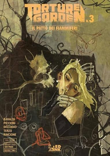 La copertina VARIANT, come le precedenti, è firmata dal grande Giulio Rincione. È una carezza seducente, in bilico tra EROS E THANATOS. Stampata in sole 200 copie numerate, al prezzo di 10 euro. Non si troverà in fumetteria ma SOLO in fiera.