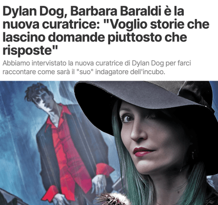 Da Rolling Stone: «Barbara Baraldi scelta da Sergio Bonelli Editore come nuova curatrice di Dylan Dog, sembra quasi uscita lei stessa dalla penna di Tiziano Sclavi, lo storico creatore dell’Indagatore dell’Incubo. Per questo il ruolo sembra calzarle a pennello, anche se nelle sue risposte è presente ancora un po’ di stupore. Quando la incontriamo per farci spiegare cosa cambierà (e cosa no, mai) in uno dei fumetti più amati dai lettori, non parla di scelte di marketing, non cita target di riferimento o ricerche di mercato, ma si concentra sul riportare «l’orrore in primo piano» andando a selezionare soggetti «nell’ottica di ciò che possono trasmettere a livello emotivo», incoraggiando gli sceneggiatori «a dialogare con le proprie ossessioni» e i disegnatori «a lasciarsi andare alle visioni più ardite». Ancor di più, sottolinea, visto che viviamo in un’epoca senza filtri attraverso gli smatphone, dove però «l’orrore esistenziale resta sempre quello che fa più paura» e avere fra le mani Dylan Dog rimane a tutt’oggi «quasi come sottoporsi a una seduta di psicanalisi». Dopo aver ideato la saga di Aurora Scalviati, la profiler che fa indagini (guarda caso) fuori dalle regole imposte alle forze dell’ordine, affrontato in un libro il tema dell’intelligenza artificiale già tre anni fa, essersi cimentata nel romanzo con la «strafottente e timida» Janis Joplin, ora Baraldi sembra di fronte alla sfida più difficile e nello stesso tempo affascinante: fare i conti con i propri incubi per esorcizzare anche quelli degli altri. Ma su un aspetto è certa che il “suo” Dylan Dog non cambierà rispetto al passato: «Non sarà politicamente corretto, non è nel suo Dna».