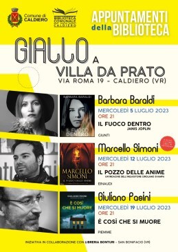 Mercoledì 5 giugno alle ore 21 sono ospite della rassegna letteraria Giallo a Villa da Prato (via Roma 19) a Caldiero (VR).