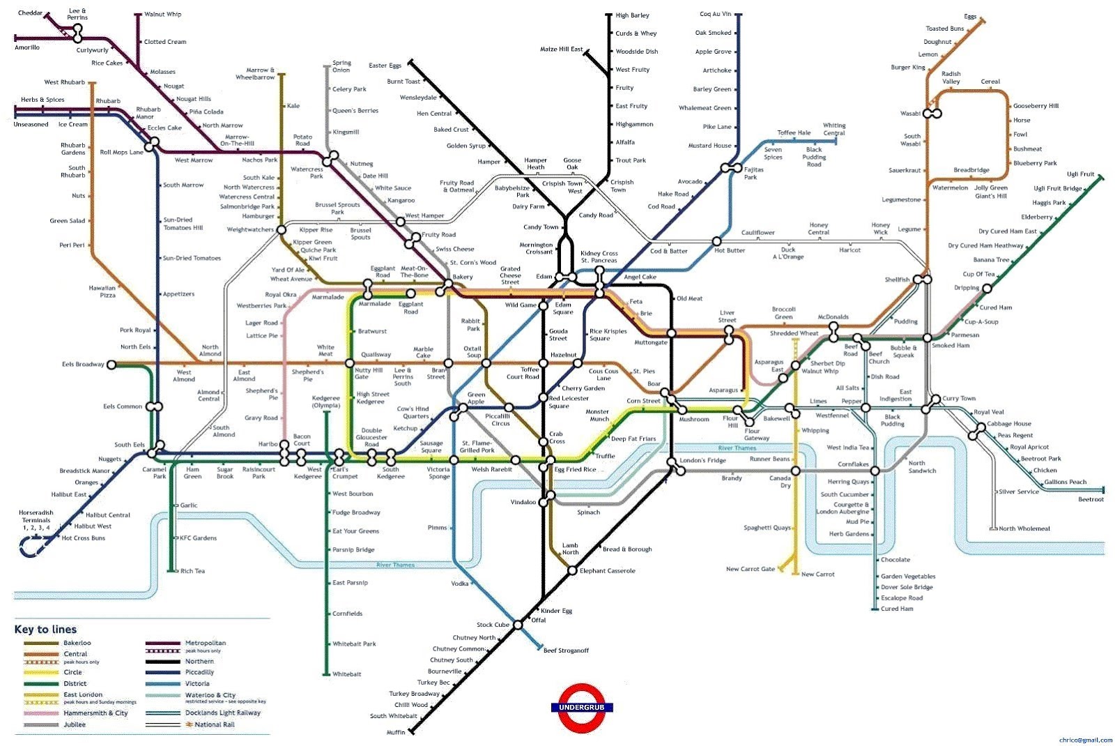 Continuing on the random city posts (I swear, I'll get back to normal topics once I've pulled my brain out of Draft 2!), I'd like to introduce you to a wonderful thing: a food-map of the London Underground. Every station has been changed into a sort-of similar sounding food... brilliant. (Click to link below to enlarge.)