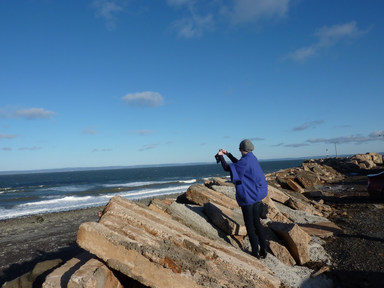 Taking a photo at Hall's Harbour (and freezing, in the process!).