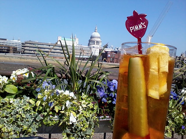 It took me awhile to come around to Pimms. Why would I want to battle my way through fruit to drink a strange brown mixture? But once you start, you really can't stop -- it slides down all too easily. For anyone who hasn't had it, I'd say it's like a cross between Long Island Iced Tea and California Root Beer (I'm aware that sound foul, but that's the closest I can come to explaining it).