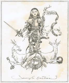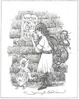 Just drove back from Baltimore this morning. 10 hours of staying awake while listening to Robert Jordan's Knife of Dreams on audio book. I'm glad that one started picking up, the last couple of books seemed to drag a bit. So, to all those who might be looking here for the first time and think "Oh, good he must post regularly because I just saw him at the Baltimore Comicon" I'm afraid you will be sorely disappointed. But at least for now here's some new stuff. First I'll start off with a couple of birthday presents. July was the month of creation for both David Petersen and my sister Julie, and here's what I gave them.