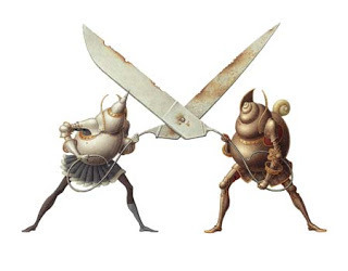 So by chance I remembered that there was an antiquarian book fair taking place yesterday at the Union at U of M. I dragged my sister to it and proceeded to spend a little past what I was allowing myself to spend. But can you really blame me [that's rhetorical]. I picked up a couple of books illustrating Napoleonic soldiers along with a couple of illustrated story books. Of these last two, one jumps out and has indeed made itself my new obsession. As far as illustrators go. The book is The Brave Little Tailor and is illustrated by Olga Dugina and Andrej Dugin. This duo has worked on only 3 other books, The Fine Round Cake, Dragon Feathers, and Madonna's the Adventures of Abdi. There is also a large selection of illustrations from an Arabian Nights collaboration that I don't believe has come out yet, on their website. Here are a couple of images from the Brave Little Tailor.