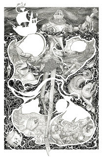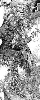 It's funny what are my favorite parts are, like the shading under the skeletons boot and the texture of the snails. This was a very challenging thing for me to take on and I'm glad I did. So far the only challenges I have set for myself were just to come up with strange characters and strain the limits of my imagination. While this is a good thing, this was a different kind of challenge and I have already seen an improvement in the pages for vol. 2 of CPG. I have definitely raised another bar on what I expect my work to look like. In interviews and conversations I've always said that I do Cursed Pirate Girl for me. And I am extremely lucky that I can afford to do it that way. I'm also extremely lucky that there are people out there who appreciate what I create. So thank you very very much for putting up with the slow progress of my little story and being open to something new/old.