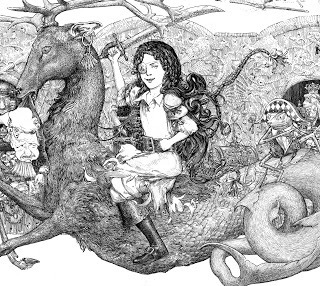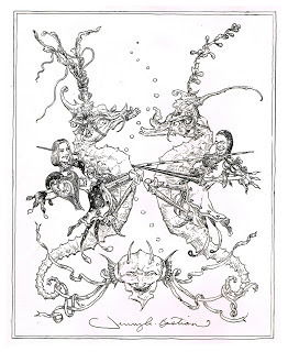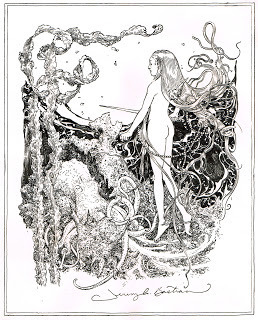 Speaking of amazing illustrators and artists of the fantastical, I don't recall if I've mentioned Kinuko Craft, who also has an art book out now Drawings and Paintings. She is also one of my contemporary favorites. We've picked up a couple of her illustrated story books, King Midas and Cinderella. She's just as magical and magnificent as Aldridge, Christensen, Rackham, Dulac, Crane, Nielsen, Tenniel, and Ford. To name a few... heh. I hope some of these names are new to you, because then you've got plenty of exploring to do. Here's a Kinuko Craft though, enjoy-