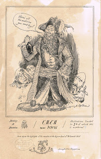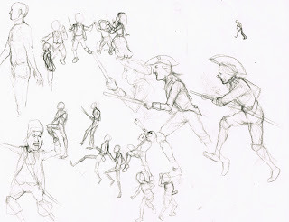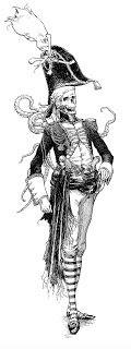 What I could not find was the original sketch of the figure that makes up the left side of the border. Which just happens to be one of the coolest things I've come up with thus far. I really like him. The figure above represents the "military might" the opposing force on the black waters of the Omertas. At least after the first story arc of Cursed Pirate Girl. The other figure represents the "Piratical will" on the Omertas. The royal soldier above is capped with a giant key, I wanted that to suggest he is more of a wind up toy than he is a free willed character.