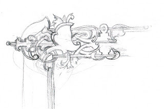 So I'm again overdue, my apologies. I was waiting to obtain scans of the finished product, my scanner is not that big and it's not the best for trying to get detail. Tom has a good friend in Transmission Atelier who has an amazing scanner and it is from him I will be able to post images that will give you a decent look at what I have been up to. He is still working on it. I do have some of the surviving sketches I did in the creation process. So here they are-