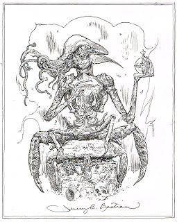 The next couple are from the border. The first little one is a small sketch I did in one of my little sketchbooks and it turned out pretty cool so I decided to blow it up and use it as the top border that reaches from the two main figures that make up the sides of the border. The second image is the figure that makes up the right side of the border. The Cursed Pirate Girl on a merstag that I have posted earlier makes up the main figure on the bottom of the border.