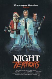 9. Subgenres. Night Terrors is an anthology of three short films. It starts with “Massacre on 34th Street,” which is, as the title suggests, Christmas horror. Why do you think Christmas horror is such a phenomenon? Why do some people find Santa so charming when he carries an axe? The second short, “Baby Killer,” is extreme horror with a touch of sci-fi about a disgraced scientist working with stem cells, and the violence goes much farther than I expected. Why does this segment go so far, and do you see yourself going to extremes in the future? The final story, “Abstinence,” is also pretty extreme, delving into body horror. What drew you to body horror, and why do you think it has become so popular?