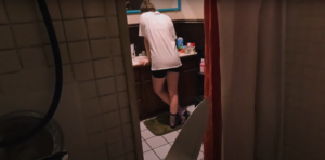 1. Peeping Toms and Killer Cameras. You shot looky-loo entirely from the perspective of the voyeur/invader/killer’s camera, effectively putting most of the film into first-person perspective (POV, or point of view). Many horror fans think Halloween (1978) innovated the first-person, killer’s-eye-view (“killer-cam”) use of perspective in horror, but its use is of course much older, likely with examples going back to very early film but emerging spectacularly in Peeping Tom (1960), a film about a killer who not only stalks women with his camera but also kills them with a weapon he attaches to it. Of course, 1960 was also the year of Psycho, which contains a particularly famous scene about voyeurism and showering. looky-loo shows us showers more than once… how did these earlier films, or other films, influence your approach to telling your story? What do you add to the killer-cam tradition? Why do you think viewers are ready to be immersed in killer-cam POV for the run of an entire feature?
