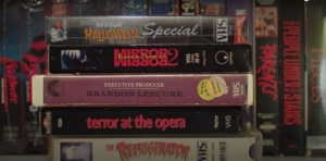 JZ: A lot of the tapes you see are my actual tapes. I grew up wandering the aisles of my local video store and marveling at the box art of films like Sleepaway Camp II: Unhappy Campers and Scream. I collected when I was younger, but I got rid of most of my tapes in college. During the pandemic, I got back into collecting in a big way, which is what inspired the short. I think that nostalgia can be a dangerous thing, and recognizing that in myself, I wanted to make something that was self-deprecating. It makes me feel more normal than the character when I have put myself into weird situations to find some of my holy grail tapes. And some of the tapes that we show are kind of in-jokes for other collectors. Like the Linnea Quigley’s Horror Workout tape, which he pulls off of the shelf at a Goodwill, because there is just about zero percent chance of finding one in the wild for ninety-nine cents.