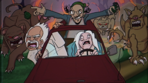 7. Living Hell. The description of Livescream that I cribbed from IMDb describes Scott going through “nine levels of video game hell,” suggesting an extended Dante reference as well as a potential moral dimension, which might become stronger toward the end as continuing to play becomes a deeper and deeper moral quandary. Does Scott go through hell due to some sin or moral imperfection? Does the game Livescream—and/or your film Livescream—have a moral message or mission? If so, what can you say about it without giving too much away? If not, what’s the significance of morality’s absence in a video game hell?