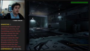 Plus, even though the story is divided between chat, gameplay, and Scott, there is only ever one essential thing happening on screen at any given time. In terms of managing horror, it is a way to pull some visual sleight of hand. For instance, most people cite that they never realize Scott gets up and leaves frame, because they’re too busy watching all the viewers leave the chat in that moment. It’s a bit easier to pull off scares in the game when they happen immediately after distracting the audience with the chat.