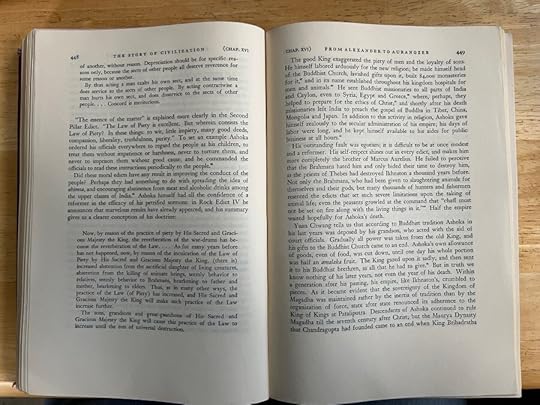 This book, as a physical object, is sumptuous. It has generous margins, as if Durant and Simon & Schuster were inviting readers to mark up the text, converse with Durant, or ancient writers, philosophers, warriors. I made heavy use of this precious commodity, and I wish more books allowed for this, but today we optimize for maximum text with minimum paper.