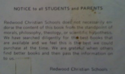 Redwood Christian Schools does not necessarily endorse the content of this book from the standpoint of morals, philosophy, theology, or scientific hypothesis. We have searched diligently for the the best books that are available and we feel this is the best we could purchase at the time. We are grateful when others find better books and then pass the information on to us.
