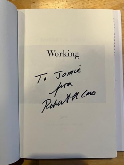 I’ve read all of Robert A3. Caro’s books to date. I’ve read The Power Broker, which was fascinating, but which I had to take breaks on because Robert Moses angered me so much. I’ve read the first four volumes of The Years of Lyndon Johnson, and like many Caro fans, am eagerly awaiting (with fingers crossed) the final volume. I’ve also read his book Working. Indeed, I have a signed copy of the book.