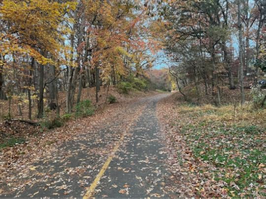 In addition to the people, there are the animals, beyond the dogs, that I encounter on these walks. Deer are frequently on the trail, or just off to the side, and are used to people walking by. They don’t budge. I see foxes crisscross the trail here and there. Birds are ever-present, but early in the morning I hear owls, and occasionally, catch a glimpse of a large wingspan passing through the trees. Frogs sing along the banks of the stream that runs through the park. Ducks paddle their way about the stream. “My ducks,” I call them, and if someone is with me, I’ll look at them ruefully and say, “Don’t they look delicious?” Once, I got a video of an otter making its way up the stream.